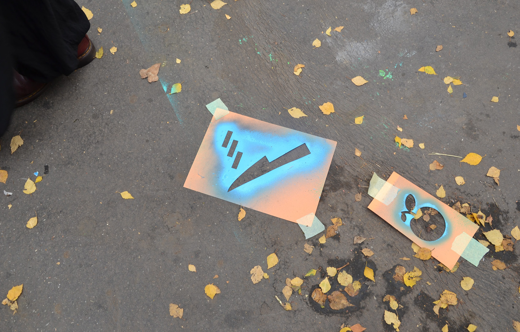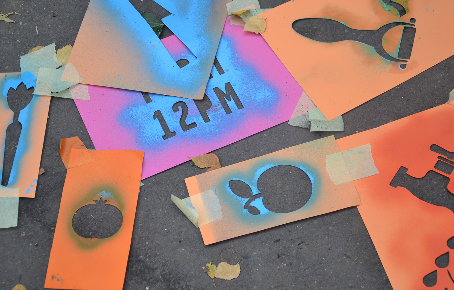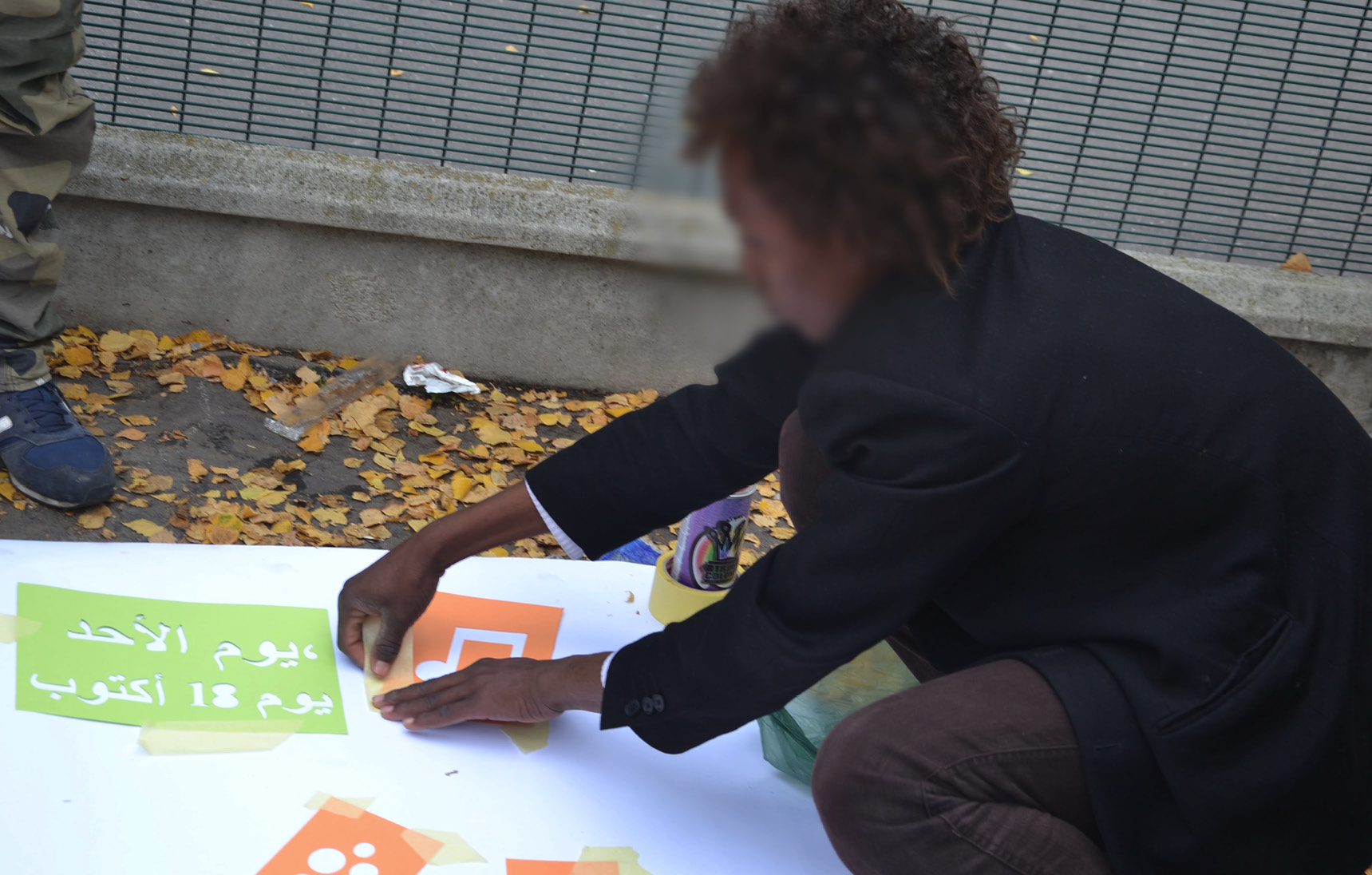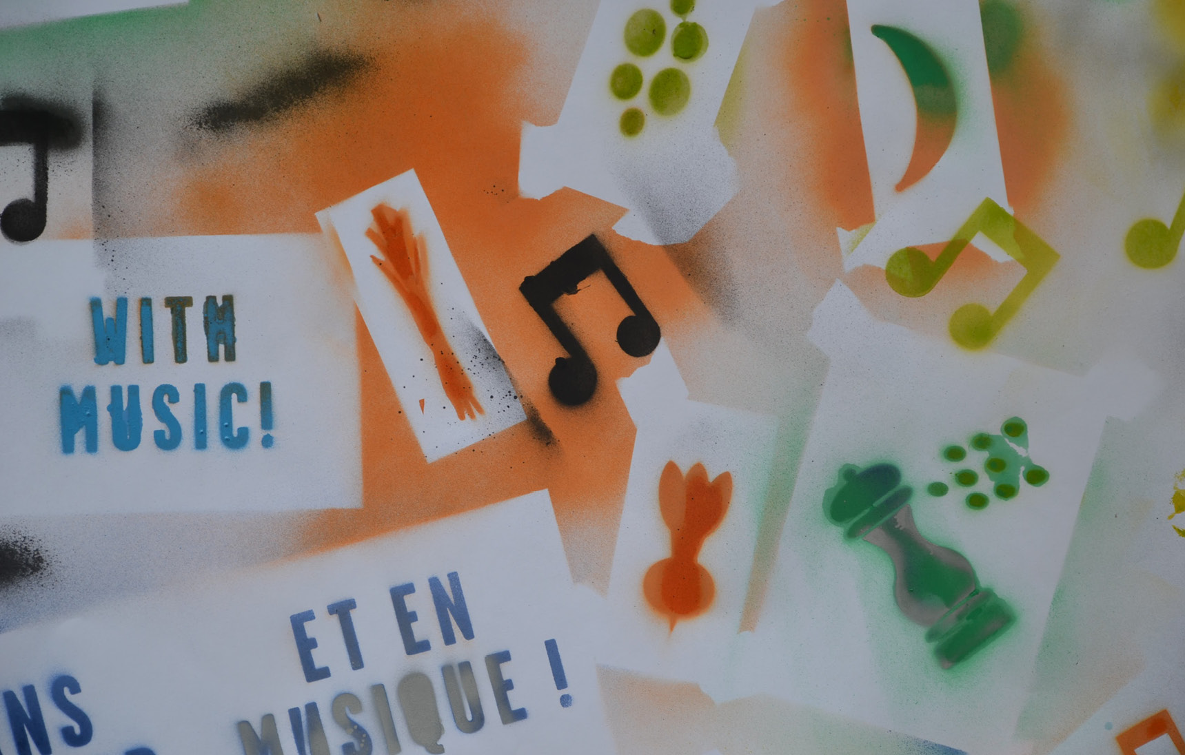 Disco Fugees Atelier pancartes au pochoir pour l'organisation d'une Disco Soupe dans un squatt de refugiés Transmission Tous les projets